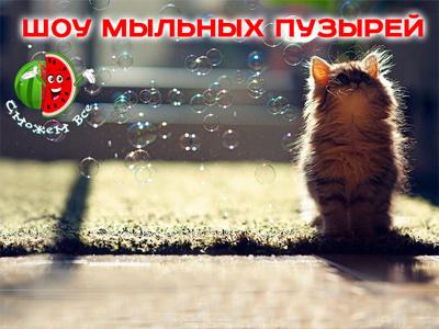 Мыльная феерия увлечет людей разного возраста, ведь они принимают в нем самое непосредственное участие, помогая в выполнении многих трюков: помещение человека в мыльный шар, образование шаров огромных размеров и «пузырей в пузыре».