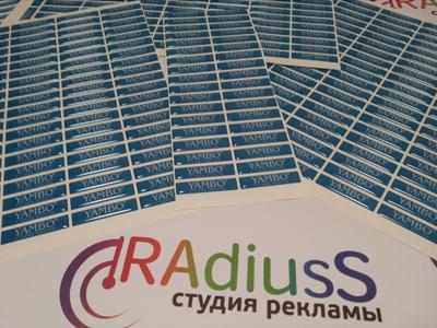 Во-вторых, печать наклеек в РадиусС выполняют типографисты со стажем не менее трех лет, а весь процесс осуществляется на самом современном оборудовании, принадлежащем нашей компании. Так что вы можете быть спокойны как насчет сроков (за этим мы следим особо строго), так и насчет того, что вам не придется переплачивать и копейки. И, конечно же, мы гарантируем, что клиент получит по-настоящему четкую печать на качественной самоклеющейся бумаге - недорого и в рекордно короткие сроки.