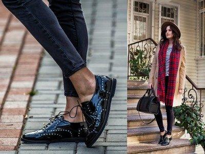 Фасон женских лакированных ботинок влияет на то с чем их носить. Если они походят на мужские, то к ним лучше выбрать белоснежную блузку с жакетом и брюки. Это придаст образу женственность. В этом случае надо остановиться на матовых кожаных, замшевых или гобеленовых сумках.